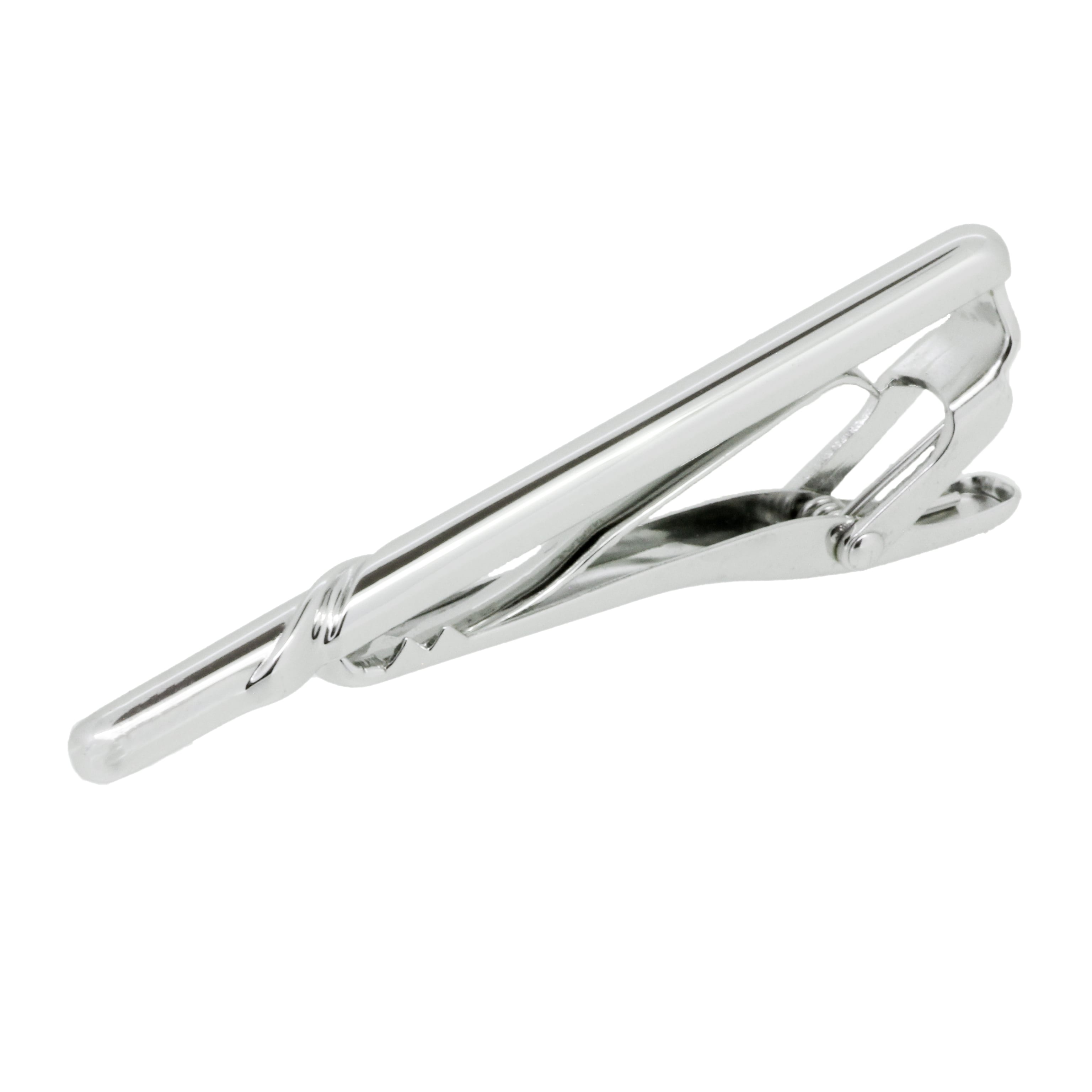 細身でシンプルなデザインで、ビジネスからフォーマルまで幅広いシーンで利用可能なタイバーです。甲丸状の直線タイプに斜めに入ったラインが美しいアクセントとなっています。